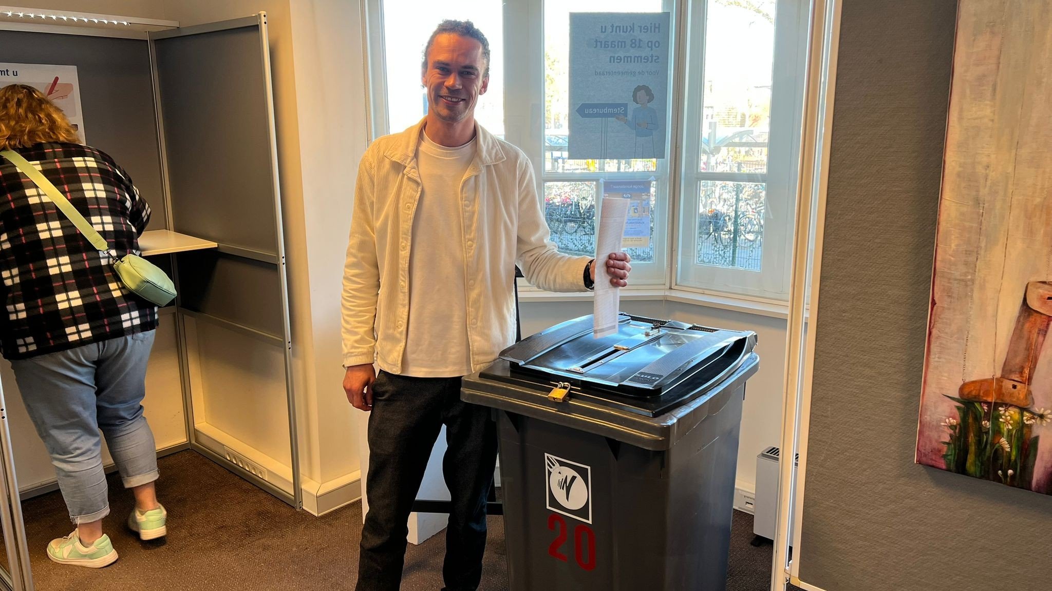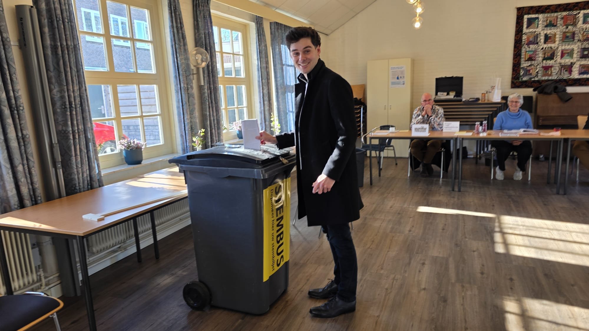 De eerste lijsttrekker heeft zijn stem uitgebracht. Sander Kouwenberg van PvdA-GroenLinks Nunspeet was er vanochtend vroeg bij op het station.