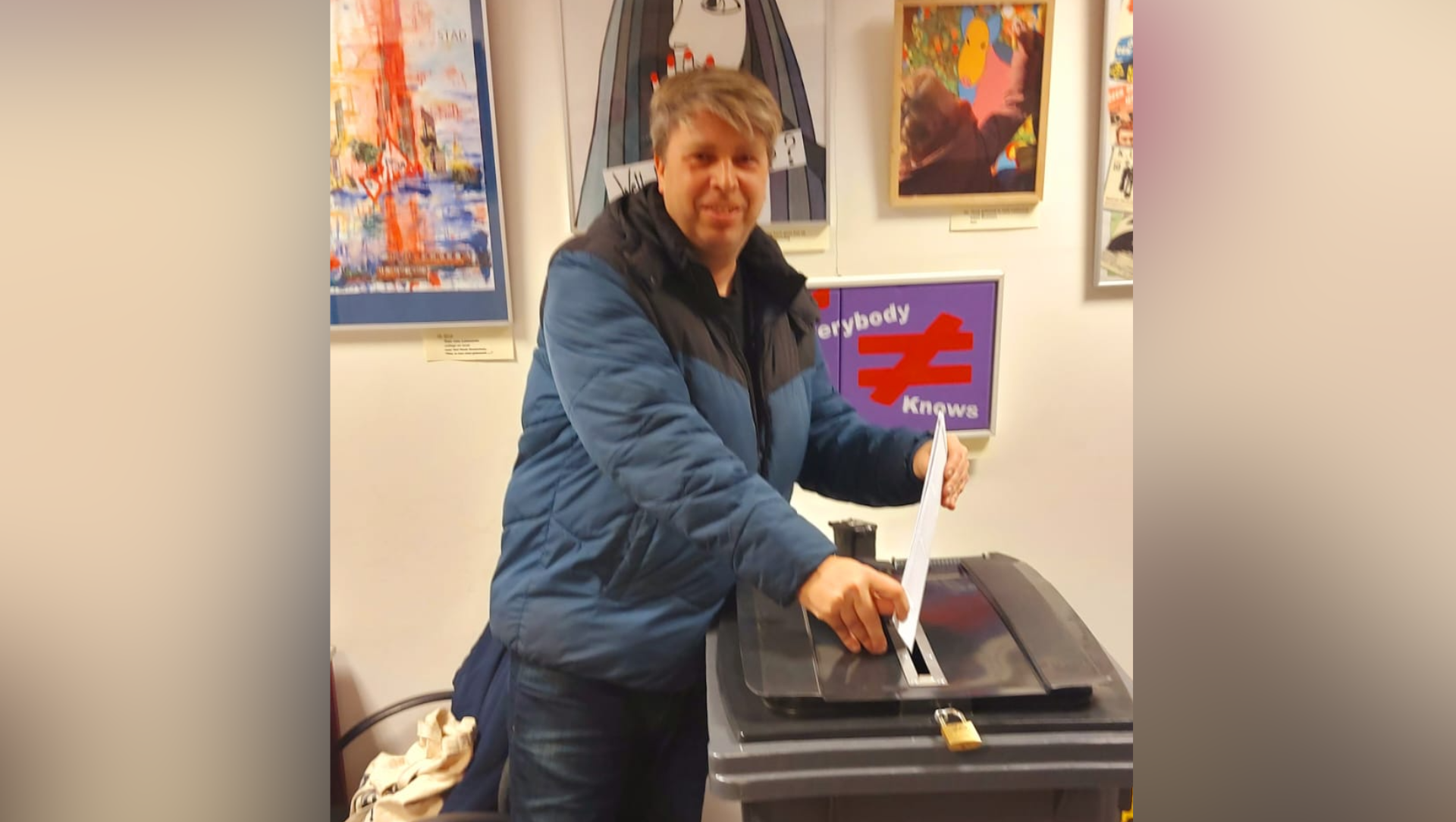Steven de Rooij (Lux21) stemt ook op het station in Nunspeet: “Net in moment besloten op wie ik ga stemmen. Tante is nummer 8 en daar heb ik op gestemd. Nu naar huis kleine siësta doen en de rest van de dag nog flyeren.”